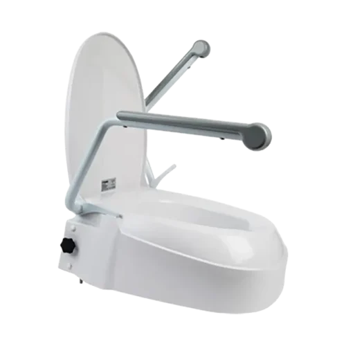 In der Höhe verstellbarer, schwarzer Gehstock aus Aluminium mit Handgriff.