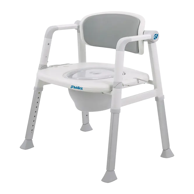 Dieser vielseitige Toilettenstuhl kann auch als Toilettensitzerhöhung oder Duschstuhl verwendet werden. Der weiche PU-Sitz kann abgenommen werden. Die Armlehnen können hochgeklappt werden und die Stuhlbeine lassen sich in der Höhe verstellen.